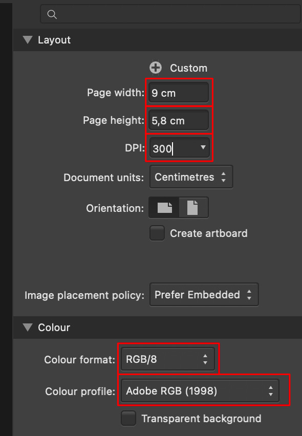 Kolejną ważną rzeczą jest ustawienie wartości DPI, czyli rozdzielczości dzięki której jakość po wydruku zostanie zachowana, nie będą widoczne poszarpane krawędzie, nadruk będzie wyglądał estetycznie, a krawędzie grafiki będą gładkie. W polu odpowiadającym za DPI (rozdzielczość) sugerujemy wpisanie standardowej wartości 300. UWAGA: w przypadku projektów wektorowych (nie zawierających osadzonych zdjęć), można pominąć ten punkt, ponieważ wektory można skalować dowolnie.