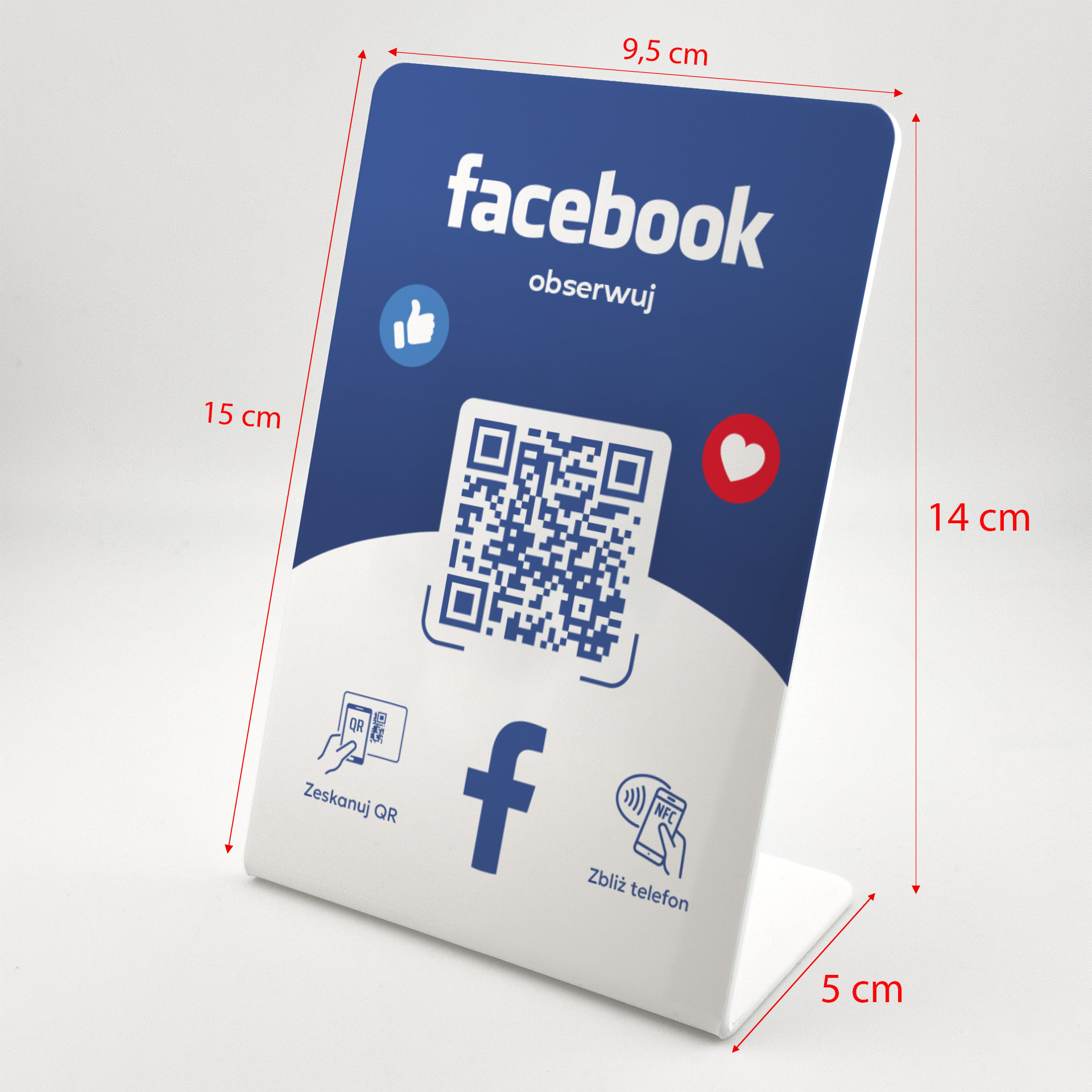 Stojak, prezenter gięty z kodem QR i tagiem NFC został stworzony dla wszystkich tych, którzy chcą dynamicznie rozwijać swoją obecność w mediach społecznościowych i umożliwić potencjalnym klientom szybkie dotarcie do swojego profilu.