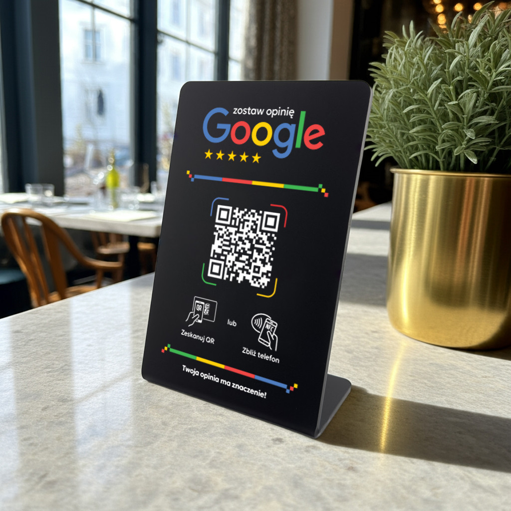 Stojak, prezenter gięty z kodem QR i tagiem NFC do zbierania opinii w Google jest idealnym rozwiązaniem dla Twojej firmy, produktu lub marki, której zależy na profesjonalnym podejściu do gromadzenia feedbacku i podnoszeniu swojej pozycji w wyszukiwarce. Zbieraj błyskawicznie opinie od swoich klientów, bez dodatkowych aplikacji - szybko, prosto i łatwo.