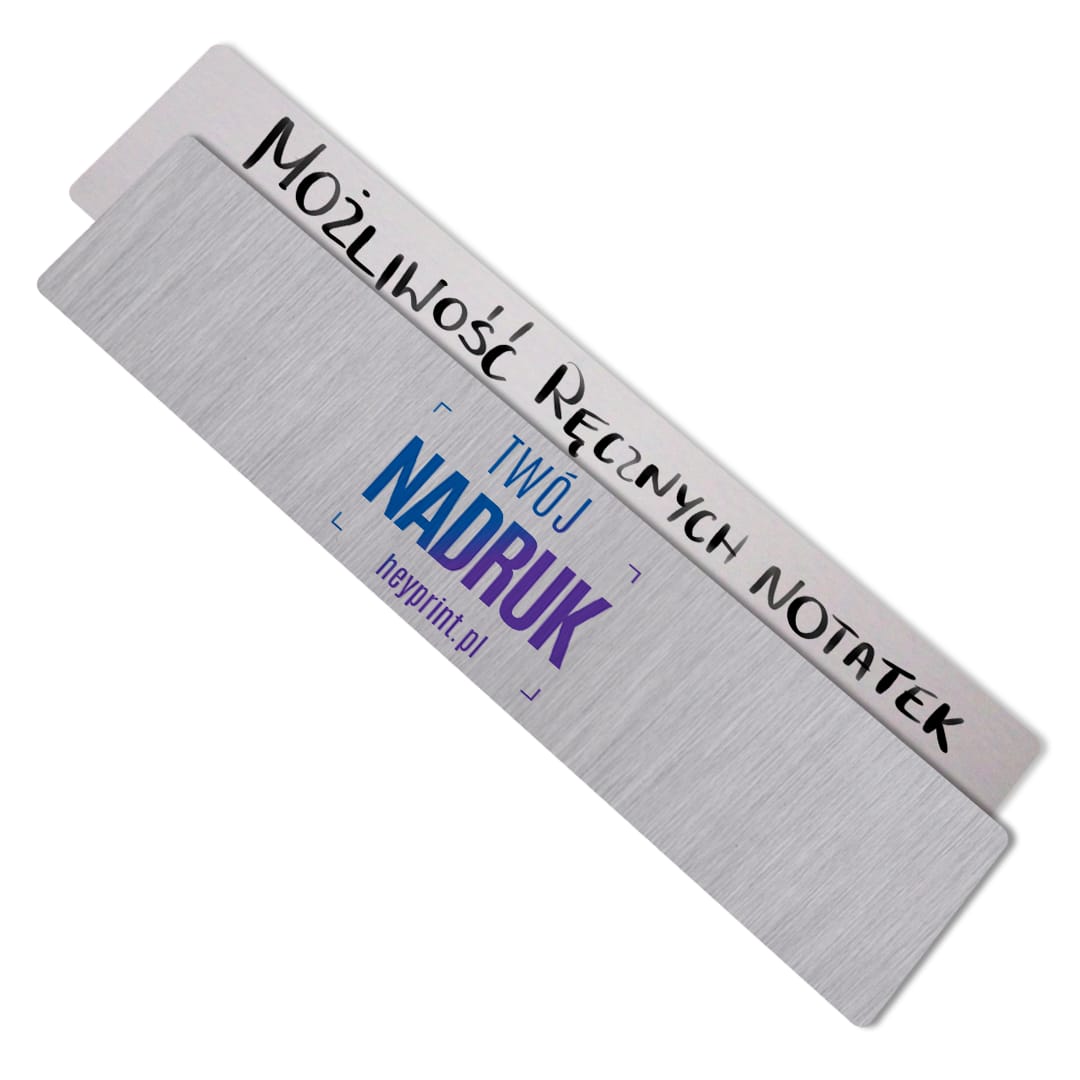 Nadruk na zakładce wykonywany jest jednostronnie, natomiast druga strona - powleczona specjalnym materiałem - pozwala na wykonanie np. ręcznej notatki.