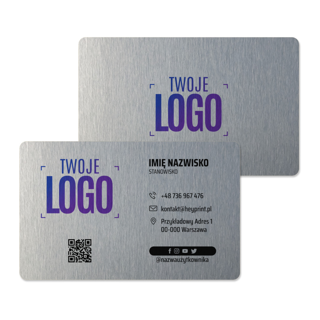 Karty metalowe PRO, grubość 1 mm, srebrne, dwustronne, 50 sztuk, wzór #2