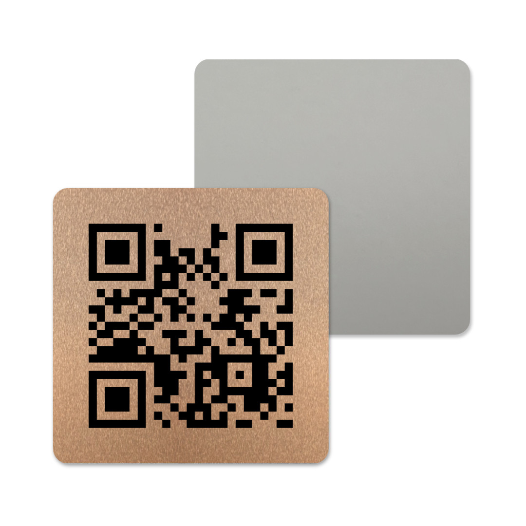 Blaszki metalowe HAND-NOTE z Twoim kodem QR, 54 mm x 54 mm, miedziane, 50 sztuk